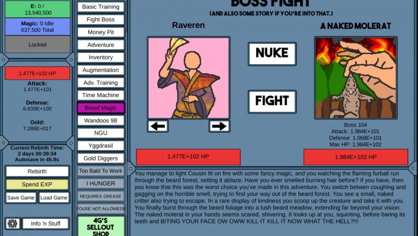 《NGUIDLE》是一款具有独特魅力的放置 RPG 游戏,游戏发行于2019年10月1日。游戏为一款放置挂机游戏,不需要玩家手动操作,游戏的角色会自动进行各种活动,让玩家在休闲的同时,玩家也可以不断成长。尽管游戏画面简单,但是系统却极其深刻,系统都是相互关联影响的,需要玩家有丰富的策略性和长远的目标。