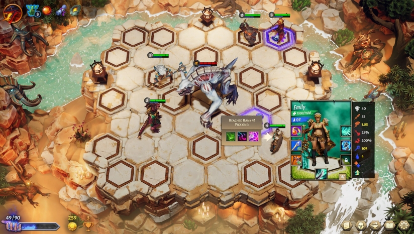 游戏包含65个独特的英雄,每个英雄都有不同的属性,主动技能和被动技能。玩家需要通过战斗积累经验,提高英雄的等级和技能。