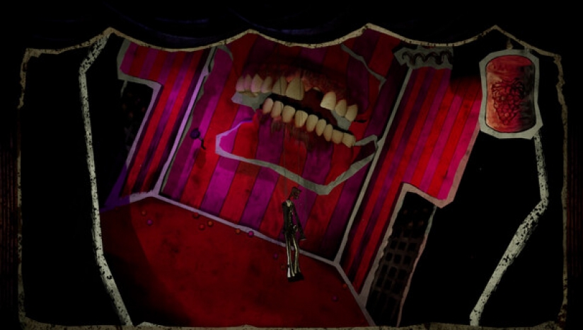恐怖元素:游戏的叙事风格随着剧情发展而变化,从蒂姆·伯顿式的童话风格转变为伊藤润二式的恐怖风格。这就像你和两位大师合作制作了一部恐怖动画电影。玩偶师就像所有艺术家一样,依赖观众的反应,因此他会密切关注你的反应。他非常喜欢玩弄你,会对你做鬼脸,开一些恶作剧,比如在你耳边放一只蟑螂,或者为了取乐毁掉舞台。你需要忍受玩偶师的频繁出现。但不要忘了舞台上的装饰,它们也长着眼睛。