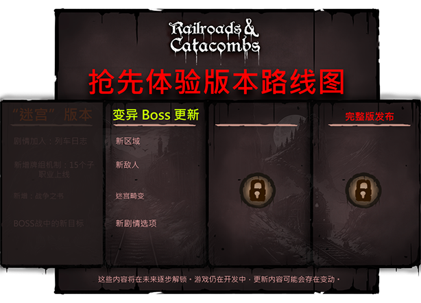 简中《铁轨与墓穴(Railroads & Catacombs)》是由MadRails制作并发行的一款策略游戏。乘坐你的旧火车穿越这片充满疯狂与恐怖,敌对又荒凉的土地。明智的选择在哪停下来获取资源与补给,并在这款原创的Roguelike卡牌游戏中生存下去
