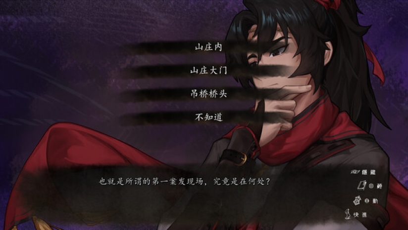 与山庄中如断刀山庄弟子沈沐、少庄主项世文等性格各异的角色交流,从他们口中询问证言、打听情报,但要注意辨别其中的谎言。