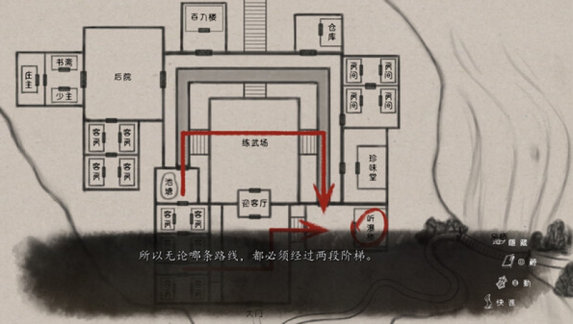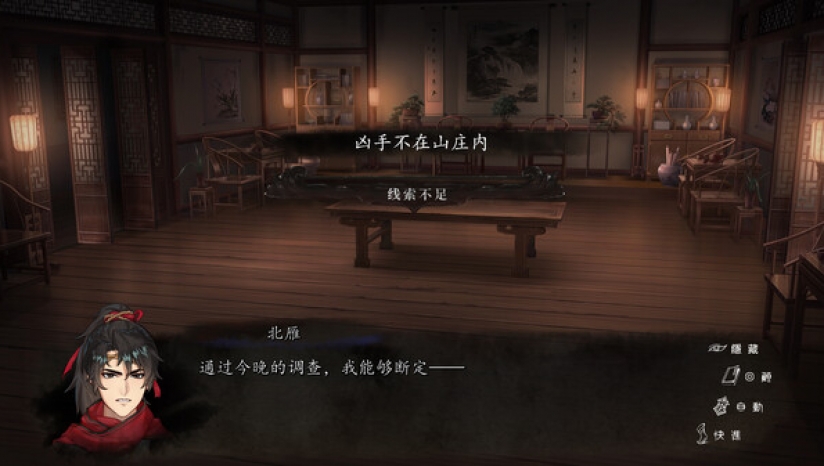 玩家可在山庄内自由移动,前往不同地点观察现场,搜集如凶器、血迹、可疑物品等物证,还原案件发生过程。