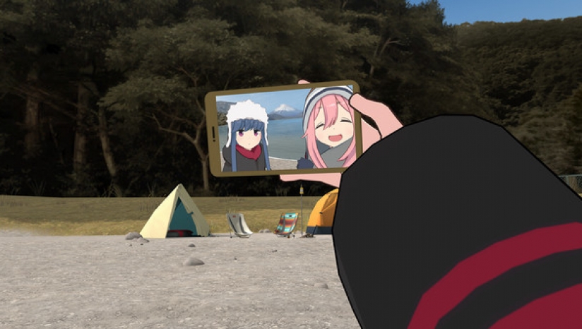 游戏改编自热门动漫《摇曳露营△》。在本栖湖篇中,玩家扮演的抚子因想看富士山骑车来到本栖湖,却遇阴天疲倦入睡,醒来后陷入困境,幸得爱好露营的凛帮助,两人围篝火取暖、聊天,共同期待富士山美景的出现。在山麓露营场篇,则是玩家扮演凛,和抚子在山麓露营场享受二人露营时光。
