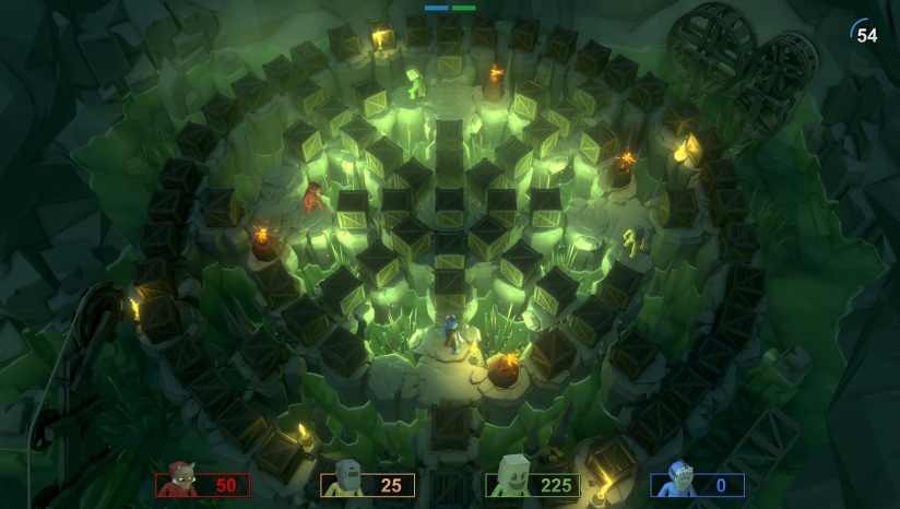 支持1-8名玩家在线或本地对战,玩家可以使用各种武器和道具在危险的地形中互相攻击。