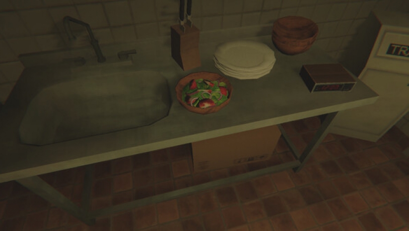 你的职责是准备菜品,并通过亭子的窗户为顾客提供服务。用菜刀准备好食材,或是在亭中的烧烤台上烤肉。顾客们有时也会想要喝点东西,所以你得为他们准备好汽水与啤酒。你偶尔还需要在咖啡机上为他们煮上一杯热腾腾的咖啡。