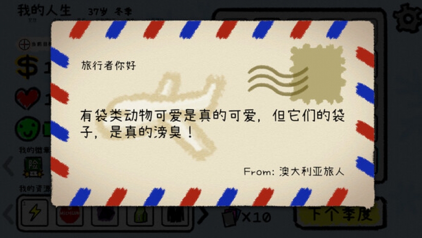 游戏中随机事件频发,为你的人生增添更多戏剧性。可能意外获得一笔横财,让你在经济上瞬间宽裕,可用于投资房产、创业等;也可能遭遇炒房爆雷,陷入经济困境,需要想办法扭转局面。还有高人指点,为你提供宝贵建议,助你做出更明智抉择。