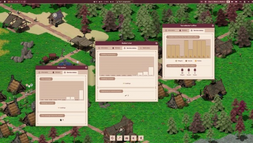 游戏中会随机出现火灾、疾病、犯罪等事件。火灾发生时,迅速组织居民灭火,减少建筑损失;疾病流行时,建立医疗设施,调配药物治疗居民;面对犯罪事件,设置治安设施,安排安保人员维护秩序。