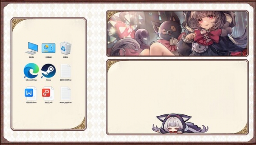 游戏采用日系萌系画风,角色设计融合猫耳元素与柔和的色彩搭配,动态效果细腻流畅,例如钓鱼时水波荡漾、战斗时的粒子特效等。场景设计以低饱和度的治愈系色调为主,搭配轻快的背景音乐与拟真音效(如翻书声、烹饪声),营造沉浸式氛围。通过Live2D技术实现角色面部表情与肢体动作的生动变化,支持4K分辨率适配,视觉表现力在同类桌宠游戏中处于领先水平。
