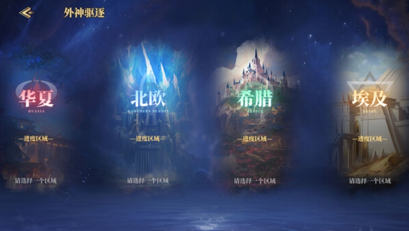 四大神话地图风格迥异,北欧的冰原、埃及的沙漠等场景细节丰富;UI布局简洁,战斗界面突出卡牌特效与连击反馈。