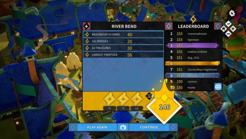 每局从修复干涸河道开始,随着城镇繁荣度提升,荒芜土地将逐步恢复绿意。完成关卡可解锁星星评级,用于修复更大规模的地图区域,形成“规划-得分-扩张”的正向循环。