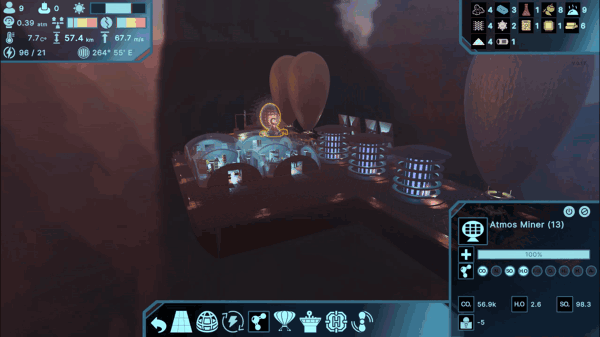 管理城市在金星天空中的稳定性是您的重要任务。城市中的不同建筑结构拥有不同的重力和浮力水平,需要您进行细致的监督,以防止失衡导致灾难性的翻转或建筑结构故障。电池和引擎等较重的部件必须战略性地放置以保持平衡。保持浮力不仅是一个平衡问题,也是一种生存策略,因为它能让你的城市保持在金星大气深处的危险温度和气压之上。这种微妙的平衡行为是扩展城市和确保殖民者安全的核心。