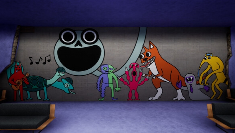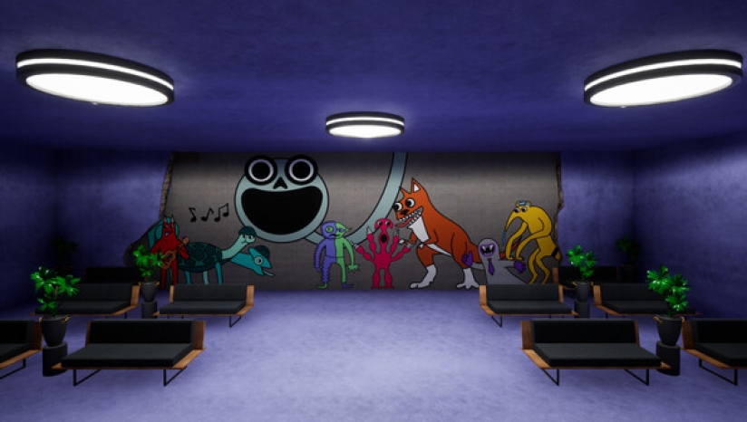 游戏采用虚幻引擎5打造,场景细节丰富:斑驳的墙漆、散落的玩具、血迹与抓痕等均以高精度建模呈现。角色与怪物设计兼具卡通风格与恐怖元素,例如蓝色班班的机械肢体与荧光纹理形成视觉反差。动态光照系统强化了恐怖氛围——手电筒光束下的灰尘粒子、怪物瞳孔的反射光等细节提升了沉浸感。此外,过场动画采用电影级运镜,配合环境音效与剧情配音,进一步深化叙事张力。