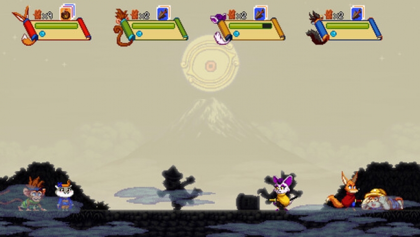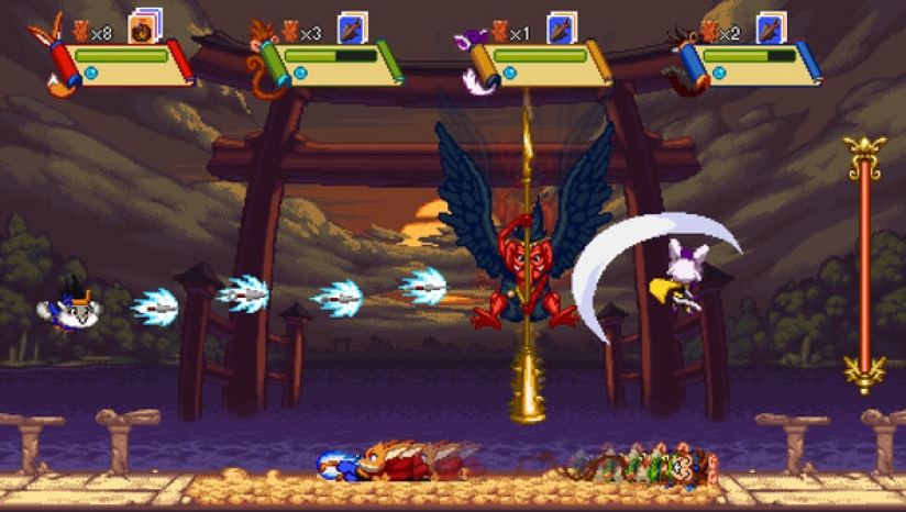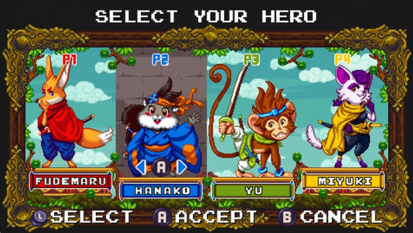《兽人英雄》是一款融合跑酷射击与快节奏忍者战斗的像素动作游戏,由Mad Gear Games开发、JanduSoft发行。游戏以东方幻想为背景,四位动物忍者大师为破除月神石化森林的诅咒,踏上前往富士山的冒险之旅。玩家可单人挑战三种难度模式,或与最多三名好友本地联机,通过冲刺、斩击、投掷武器等流畅操作突破四大世界共12个关卡,灵活运用角色专属技能(如狐狸变身、松鼠滑翔)应对动态战场。