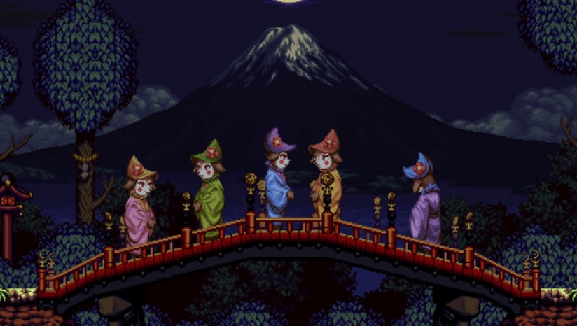 采用16位像素艺术风格,场景细节丰富(如飘落的樱花、流动的熔岩),敌人设计融合神话生物与机械元素。动态天气与昼夜循环增强沉浸感,BOSS战如“熔岩巨龙”的火焰吐息与“月神化身”的全屏攻击极具压迫感。
