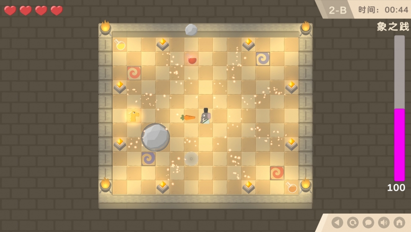 想要新鲜的体验吗?那一定不能忘了魔王战!在魔王关中,你不需要仔细思考谜题的解答。你要做的,是躲避魔王的快速攻击,并吃到萝卜以发动反击!