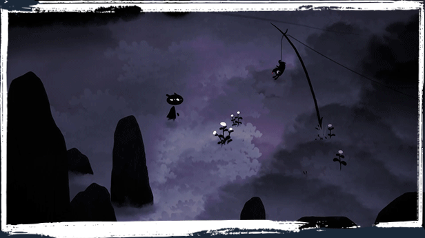 采用水彩质感2D画面,角色以无轮廓阴影呈现,场景如流动的画卷。原创配乐融合自然声响(鸟鸣、风雪)与空灵旋律,战斗时切换紧张的鼓点节奏,增强情绪张力。