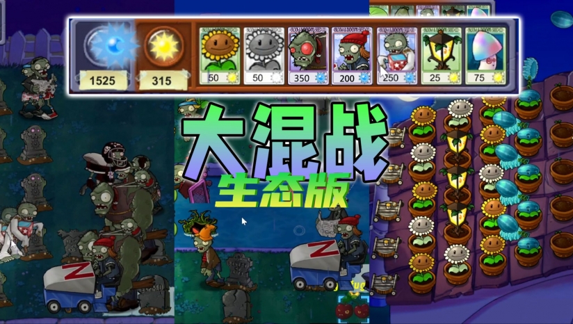 《植物大战僵尸生态版》是B站UP主“无脸的程序”制作的多人联机版本,支持1-4人协作,共享阳光与卡槽对抗僵尸。新增天气系统(如雷雨、昼夜)和生态机制,雨天需用水生植物排涝,沼泽地图树荫影响产光。加入薄荷、寒冰双发射手等强化植物,幽灵僵尸需灯光显形,铁桶僵尸免疫黄油。玩家可自定义天气参数,或通过团队配合破解复杂环境。现已开放冒险模式、PVP及跨平台联机,所有内容免费解锁,兼顾策略深度与创新乐趣。