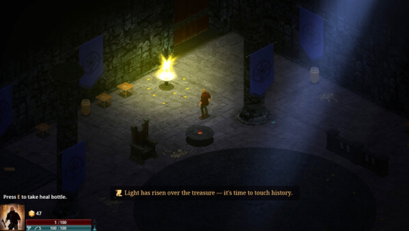 关卡随机生成,包含动态陷阱(尖刺地板、毒雾)和谜题(机关门、压力板),每次探险都是全新体验。永久死亡机制迫使玩家优化资源管理,收集金币解锁技能树或购买强力装备。