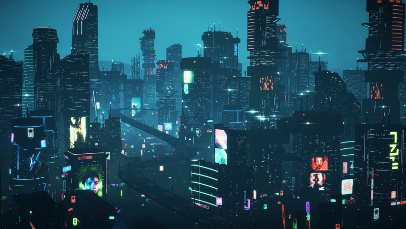 以高饱和度霓虹色调为主,建筑棱角分明,巨型广告牌与全息投影赋予城市层次感。场景设计参考了《银翼杀手》等经典科幻作品,黑暗与光明的对比强化了反乌托邦主题。