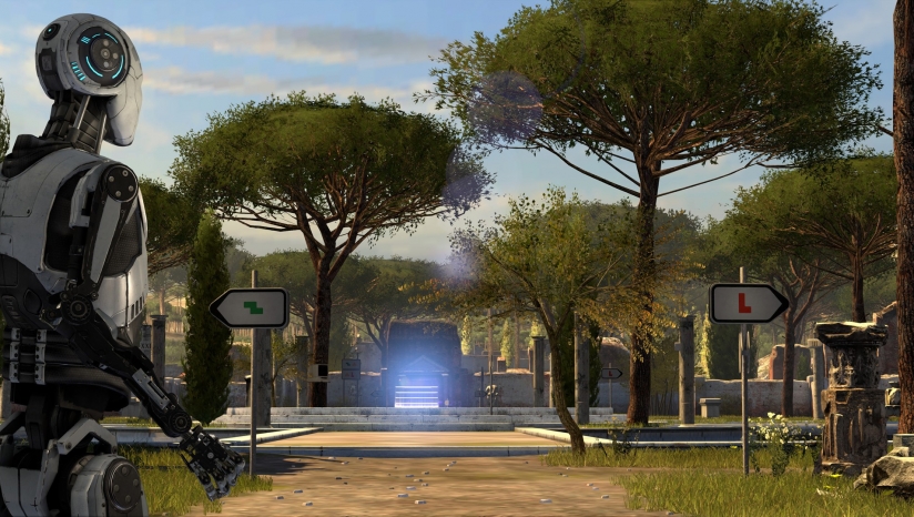 《塔洛斯的法则》由克罗地亚团队Croteam开发,Devolver Digital发行,是一款以哲学为核心的第一人称解谜游戏。故事设定在人类灭绝后的未来,玩家扮演名为“艾丽卡·卡尔文”的AI程序(或机器人“UR-025”),在神秘存在“埃洛希姆”的指引下,探索一个融合古代文明遗迹与未来科技的试验场。玩家通过解谜逐步揭开人类灭亡的真相,同时直面“意识觉醒”“自由意志”与“造物主悖论”等哲学命题。场景跨越古希腊神殿、古埃及迷宫与中世纪城堡废墟,隐喻人类文明的轮回与智慧的永恒性。