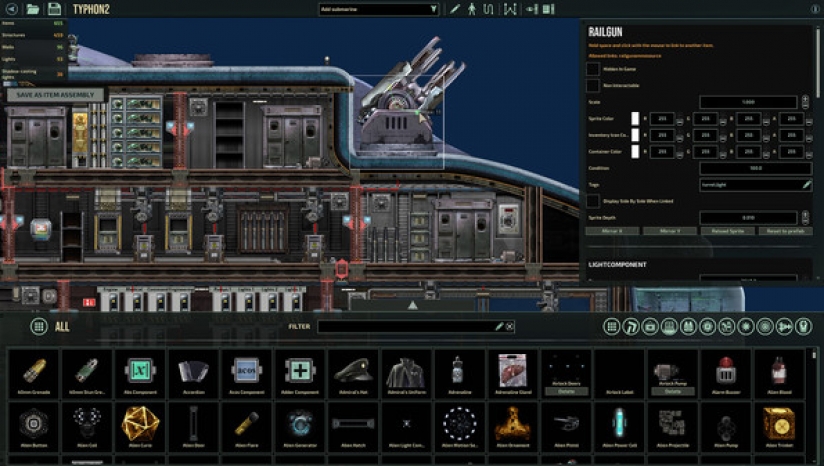 4、内置潜艇、角色和程序动画编辑器。通过Steam创意工坊直接分享和发现模组。