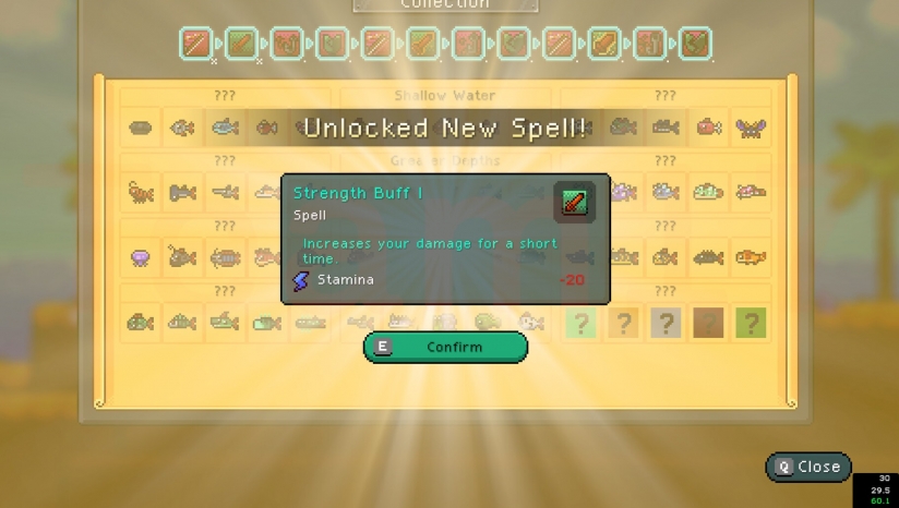 完成任务或钓鱼可获得经验值,升级后解锁咒语(如治疗、暴击)和装备强化(如磁力鱼钩、钻头)。钓获的建材可重建村庄,解锁新商人及任务。