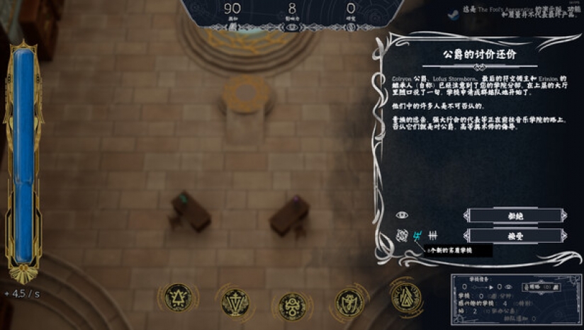 2、管理每个学徒并为他们施法,引导他们远离 “野心 ”和 “艺术激情 ”等愚蠢的东西,学习社会最认可的魔法......或者与奥术学院本身对抗,在人群中传播魔法!