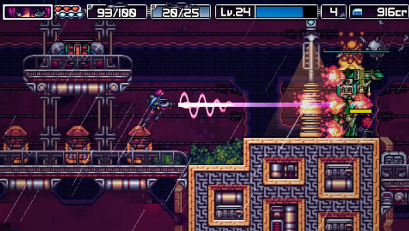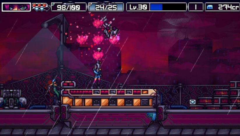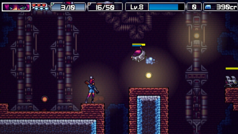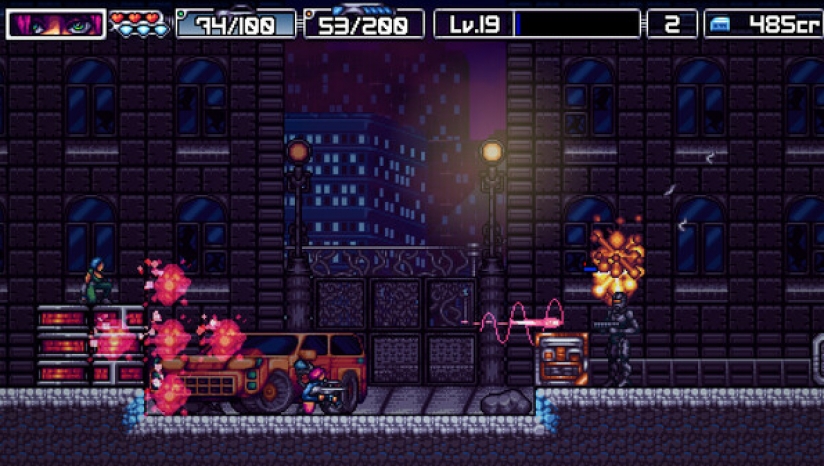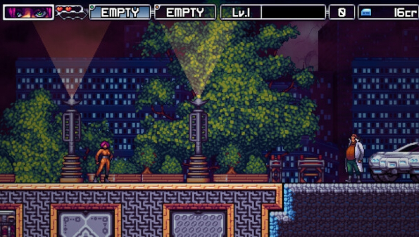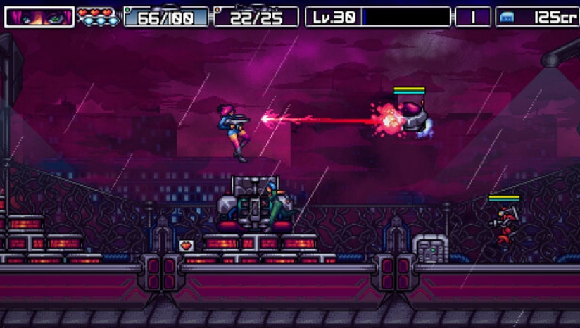 女性主角像素图形赛博朋克剧情复古机器人反乌托邦清版射击横向滚屏游戏语言: