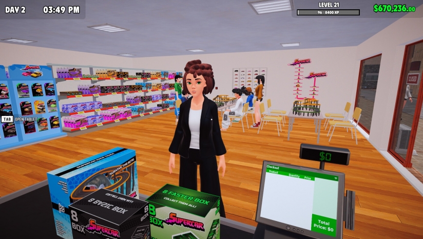 7、扩大你的商店,吸引更多顾客!添加新货架、赛车平台、超级跑车盒子和收藏品,以获得新客户并提高利润。