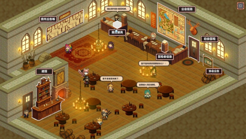 《异世界冒险者公会》(Isekai Adventurer Guild)是一款通过完成大量委托来培养公会中注册冒险者的轻度Rogue游戏。由Beard Bear开发制作,未来将会上线steam平台。在这款游戏中,玩家将会扮演一名冒险者工会的会长,将从异世界召唤的冒险者注册到公会,执行各种委托任务。利用完成委托获得的奖励,培养冒险者并发展公会。