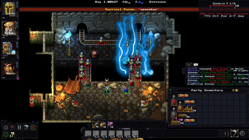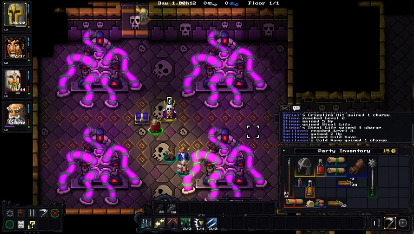 地牢内遍布可交互元素,如引爆炸药桶造成范围伤害,或利用冰冻术封锁熔岩流阻截敌人。资源管理涵盖装备升级、基地建设与角色理智值维护,决策失误可能导致小队永久减员。