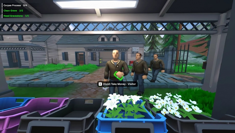 处理完尸体后,访客将定期返回查看他们的亲人。您的职责是保持坟墓的清洁和完整,同时提供鲜花以确保他们满意。每次访问都会奖励您宝贵的奖金,以帮助您保持业务顺利运行。
