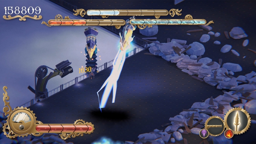 3、在 Clockwork Sword 中与敌人战斗会增加您武器上的压力表。当你的压力满时,在模式之间切换会释放出每种形态独有的巨大特殊攻击。把握好你的武器切换时机,以获得巨大的回报。