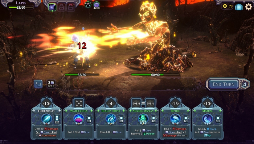 玩家需通过投掷骰子激活法术效果,骰面点数直接影响技能强度与触发概率,例如“大漩涡”与“愚人希望符”的组合可形成连锁伤害。