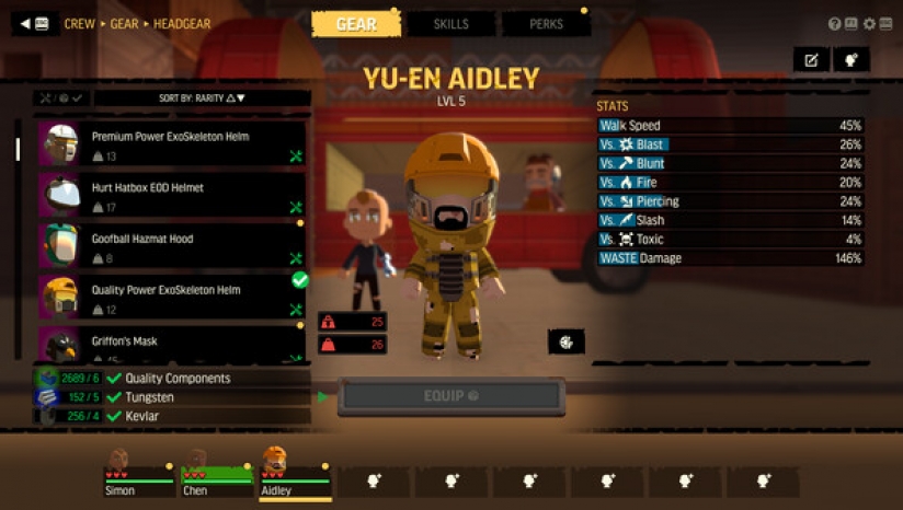 随着任务的完成,身经百战的队员变得经验丰富。运用这些经验,将他们改造成一群精锐的公路战士,使他们的能力与你的战车及游戏风格相辅相成。为每位战士配备盔甲和武器,以增加他们的幸存机会。