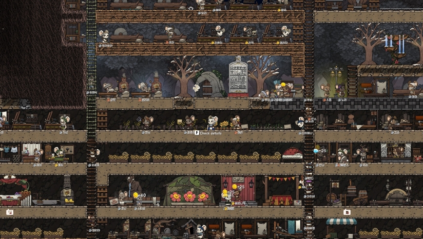 每只鼠鼠市民拥有独立属性和性格词条(如“乐天派”或“高血圧”),影响工作效率与生存状态。随机事件(如墓碑怪物突袭、资源短缺)迫使玩家动态调整策略。
