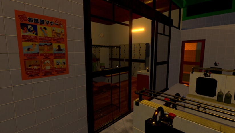 作为一款第一人称视角的步行模拟器,玩家需通过探索环境、收集线索来推动剧情。游戏以沉浸式体验为核心,玩家需在村庄和澡堂的狭窄空间中穿梭,解开隐藏的谜题并触发关键事件。例如,通过观察场景中的细节(如褪色的海报、老旧的设施)逐步拼凑出事件背后的逻辑。游戏流程约1小时,包含两种结局,玩家的选择将影响故事的最终走向。此外,开发者特别设计了“心理压迫”机制,通过环境音效(如滴水声、脚步声)和视角限制,强化玩家的紧张感与代入感。