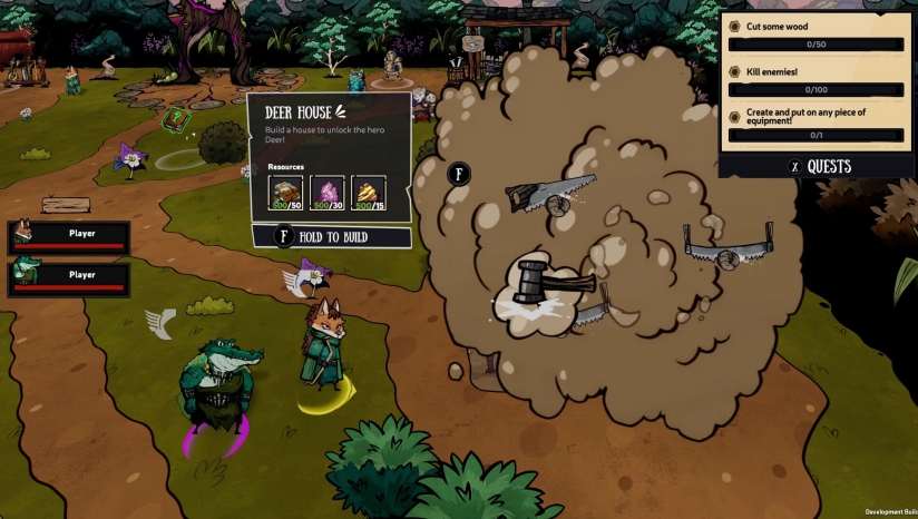 《Broventure:The Wild Co-op》设定在一个充满未知与挑战的奇幻世界。玩家将扮演冒险者,深入程序生成的神秘地点,与朋友组队对抗盘踞其中的奇异生物和冷酷Boss。游戏以“解放与重建”为核心叙事:通过击败敌人收集资源,将荒芜的营地逐步发展为繁荣的避难所,吸引更多角色加入队伍,共同抵御愈发强大的威胁。