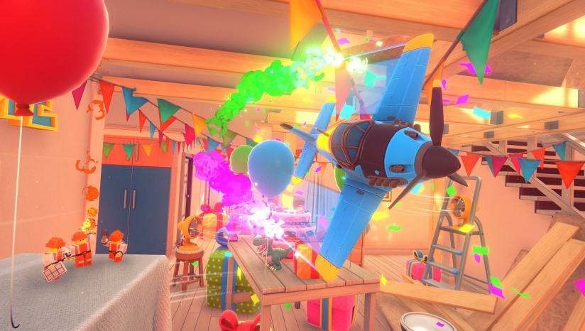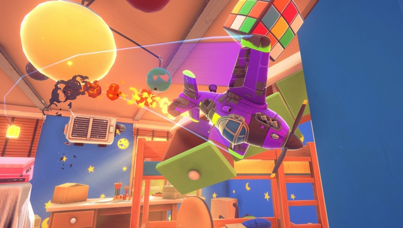 玩具飞机在日常空间中进行战斗。在家具之间穿梭,躲避高耸的灯光,并在充满活力、充满怀旧气息的世界中参与快节奏的混战。