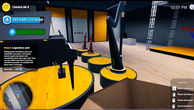 自由设计购物中心布局,选择店铺类型(如奢侈品店、平价超市)和公共设施(休息区、绿植装饰)的位置,并通过扩建解锁更多空间。
