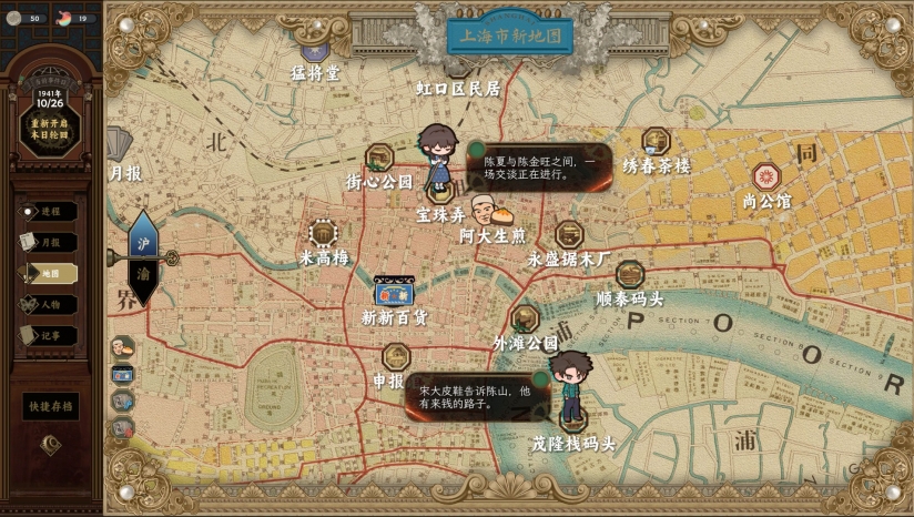 融合真实历史素材,《大公报》剪报、老照片复刻场景等细节还原1940年代风貌,玩家需通过报纸头条、广告暗语等碎片捕捉情报。