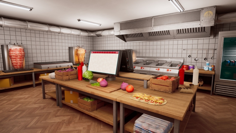 从接单到出餐,玩家需亲自完成切菜、烤肉、调配酱料、包裹卷饼等一系列操作。例如,需精准切割土豆条并油炸,掌握烤肉火候至“完美状态”,最后按顾客需求组合食材。
