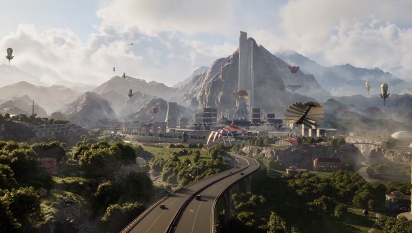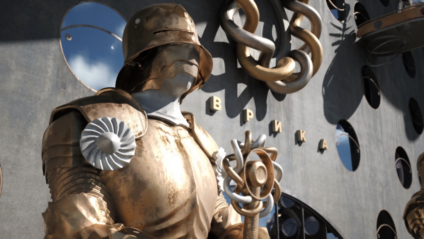 融合苏联复古设计与未来科技,机器人、建筑与道具兼具冷战工业感与科幻张力。