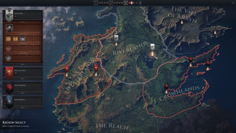 《权力游戏:征战维斯特洛》是一款由PlaySide Studios开发的PC即时战略游戏。游戏以乔治·R.R.·马丁笔下的维斯特洛大陆为舞台,玩家可选择史塔克、兰尼斯特、坦格利安家族或异鬼之王的军队,在史诗级战斗中角逐铁王座。游戏包含剧情战役与多人对战模式,剧情战役将重现《权力的游戏》中标志性的战役与转折点,如黑水河之战等,玩家需通过战略部署、结盟与背叛来改写历史。各阵营拥有高度差异化的战术风格,专属英雄、兵种与战斗机制灵感源自维斯特洛的血腥传承。