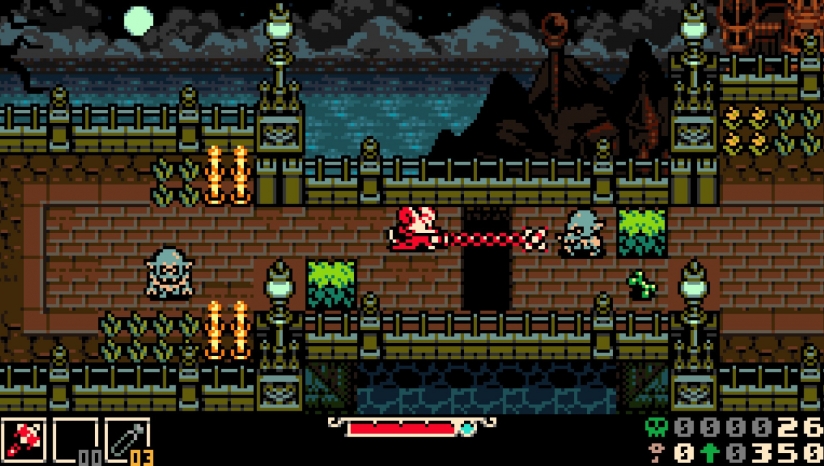 鞭子战斗:主武器“黑夜之星”鞭子攻击可积累黄色临时血条,需消耗血瓶转化为永久生命值,形成高风险“战斗回血”策略。