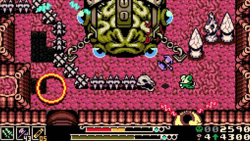 采用GBC时代8-bit像素美学,以60帧流畅动画呈现俯视角世界;场景设计融合复古像素与阴森主题(如机械实验室、幽暗洞穴)。