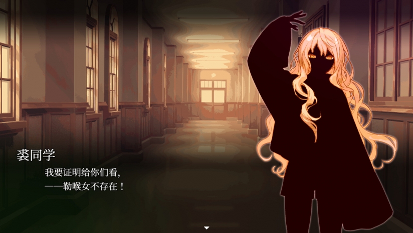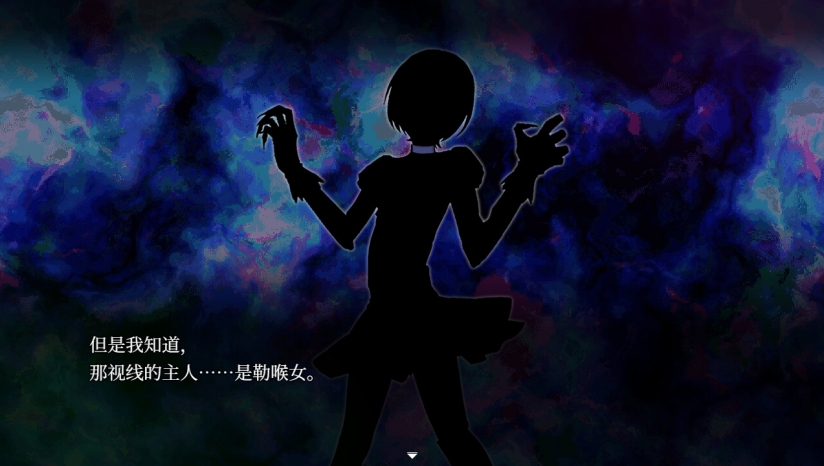 角色讲述怪谈时采用复古剪影立绘,搭配冷色调光影与突变音效,强化不安感;勒喉女以“蓝/红项圈”等视觉符号制造心理暗示。