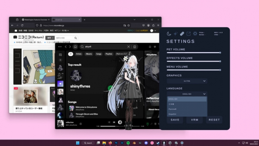 MateEngine是一款轻量级、可定制的桌面配套应用程序,可将3D动画风格的角色带入屏幕。内置VRM模型支持,它允许您注入自己的化身,并从桌面上观看它们的互动、空闲甚至跳舞。