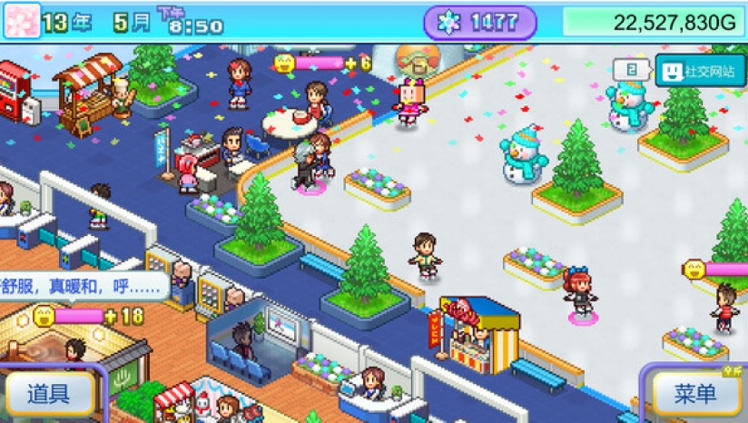 简中《银盘滑冰场物语(Skating Rink Story)》是由Kairosoft Co.,Ltd开发并发行的一款像素风格的模拟经营游戏,支持简体中文。游戏以滑冰场的经营管理为核心,玩家需要扮演多重角色,包括溜冰场老板、溜冰导师、服务员和教练等,通过接待顾客、提供服务和设施建设来赚取金币,并用这些金币来购买装饰和升级设施。玩家还需要招募并培训员工,提升服务质量,举办滑冰比赛和主题活动来吸引更多顾客。游戏的玩法亮点颇多,玩家可以根据自己的喜好和市场需求,设计不同风格的滑冰场。游戏的美术风格温馨梦幻,色彩鲜艳明亮,场景细腻逼真,为玩家营造了一个充满童话色彩的滑冰世界。