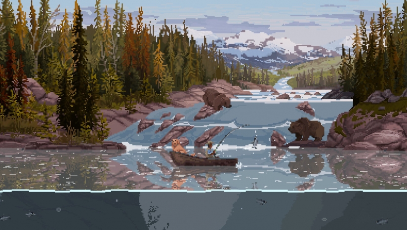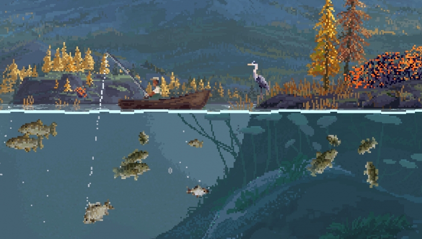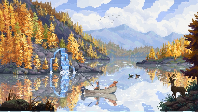 游戏采用精细的像素美术风格,水体效果尤为突出:波浪动态光影反射及鱼群游弋轨迹均以细腻动画呈现,营造“流动的油画”质感。场景设计融合写意与写实——湖泊静谧河流湍急深海幽邃,配合环境音效(如水流声收线机械音)强化临场感。鱼类的像素造型兼具辨识度与生态特征,玩家能逐步通过外形区分物种。整体画面以低饱和度色调为主,辅以柔和光影,传递出平和治愈的视觉氛围。